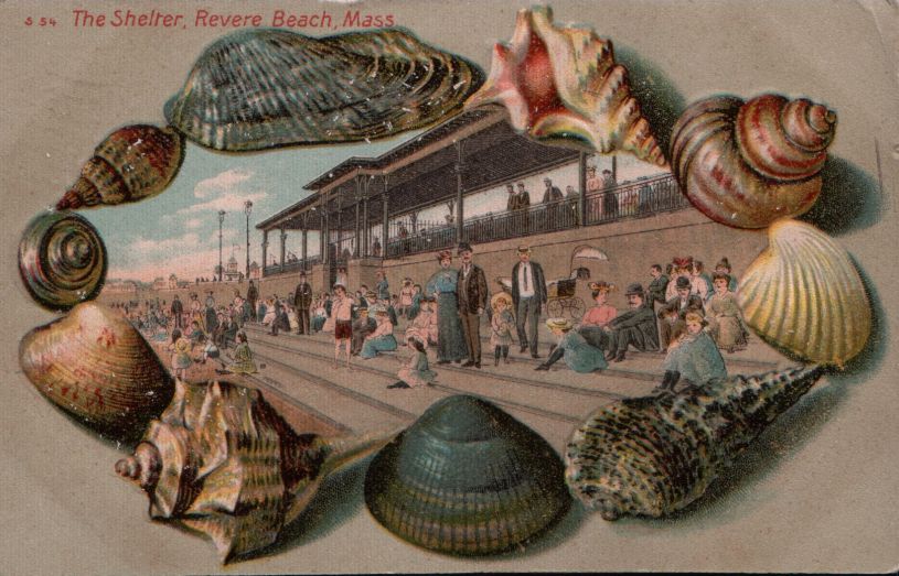 My featured postcard is of “The Shelter”, Revere Beach, Mass. I am unsure of the publisher but there is a number listed in the top left corner of the front side: S 54 and this postcard was printed in Germany.