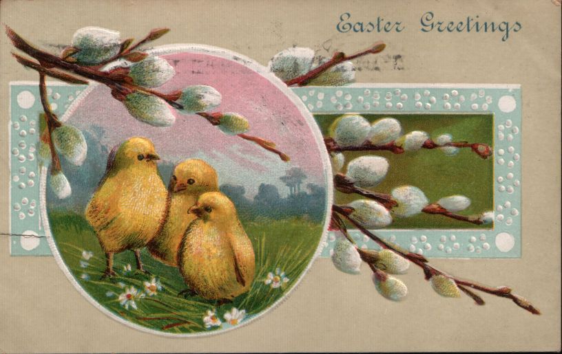 Hoping that your Easter will be bright and happy. Will try and see you soon. With Love, May & Will.