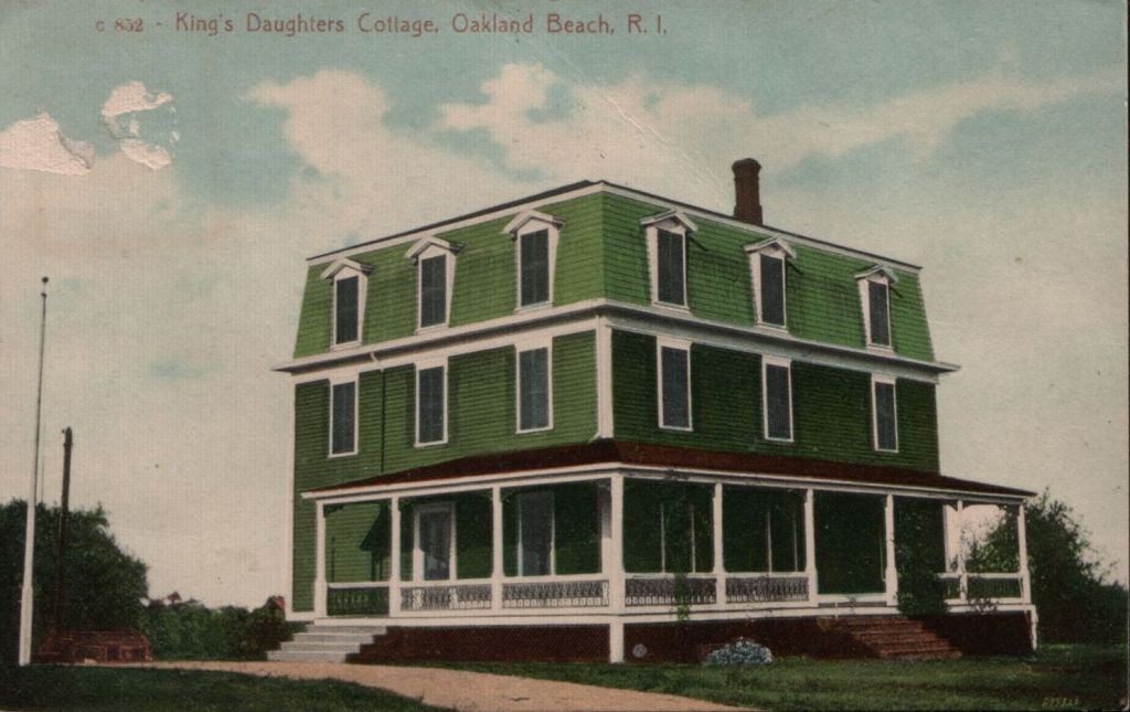 My featured postcard image, which is also shown below, is of the King’s Daughters Cottage, in Oakland Beach, RI; also known as the Emily L. Chace Memorial Home. This postcard was from about 1910 and was published by the B.Y. & Co., made in Germany. I chose this image because of the Oakland Beach tie in. After a brief search, I was not able to find anything of substance to share regarding this house. Since I did not want to focus too much time and attention on that today, it is possible that I may find something of interest to share in the future; if so, I will make reference back to this postcard at that time.