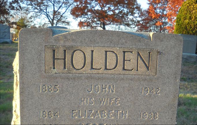 John and Elizabeth Holden are buried in the Apponaug section of Warwick, RI. They were living in the Pontiac section prior to death. A partial photo of their headstone is shown here below.