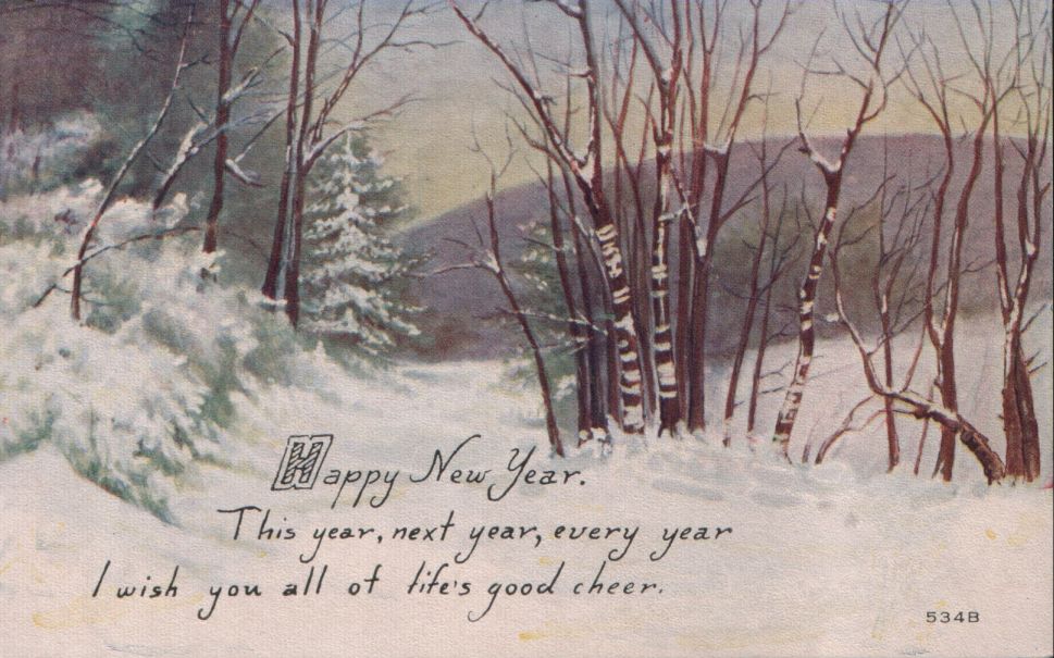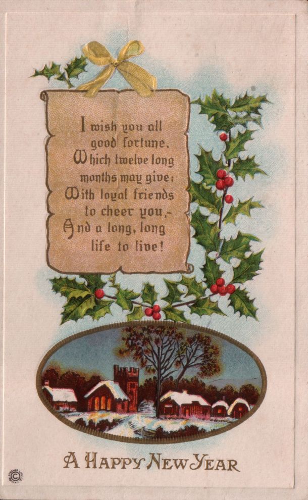 The second New Year greeting postcard for this blog posting is shown below. It has a verse on the front as follows: