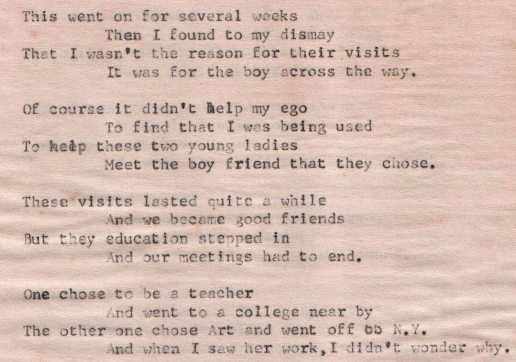 Here is the poem, shown below in image form taken from a scanning of the original sheets. I worked on typing the poem into the body of the blog but I was having issues with the technical end of things and I could not get it to present correctly in the form of a poem and I was getting too tired to figure it out. That said, I hope the words in the images are large enough to read or can be zoomed in to make large enough to read.