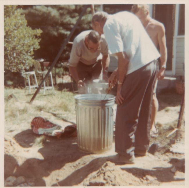 In the picture above, Grampy is sitting in the middle with my dad in the red shirt and Uncle Richard in the tie. The picture top right is of my grandparents and my dad as a baby. The picture bottom right is Grampy helping my dad and my brother Mark as they were making the clam bake, which became a bit of an annual tradition on Labor Day weekend.