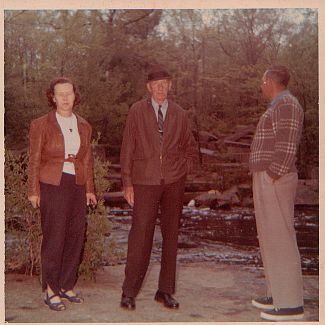 The picture on the left above was taken in 1969 on one of our adventures. The picture on the right was taken at my adoptive maternal grandparents house, by the little fish pool in the garden backyard area. My Grampy is the one in the middle with the suit, the little boy I believe is my dad’s brother Richard. My mom is standing on the end and her adoptive parents on the opposite side.